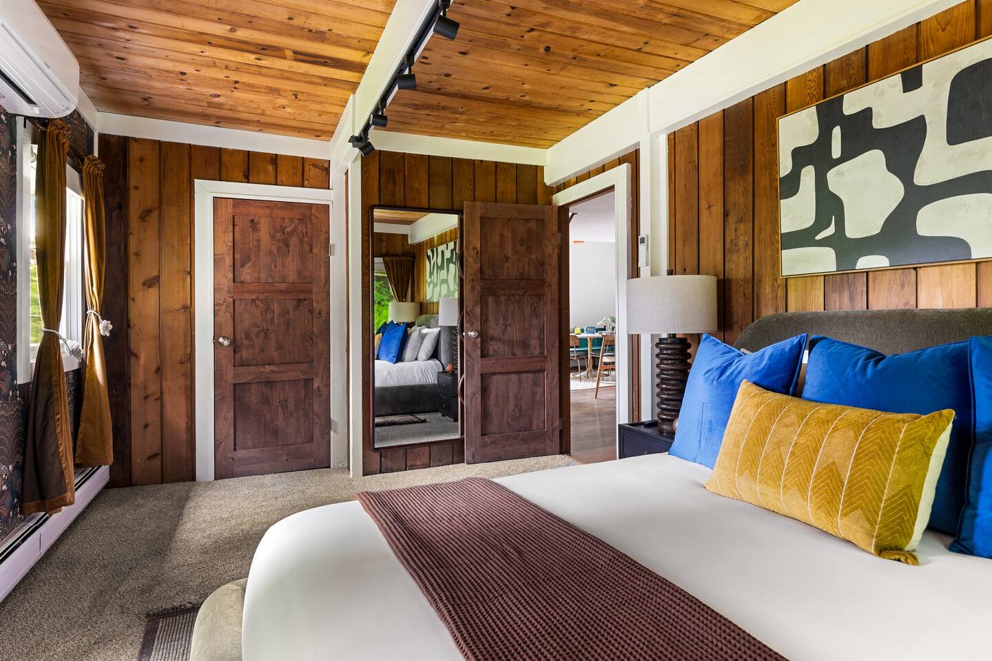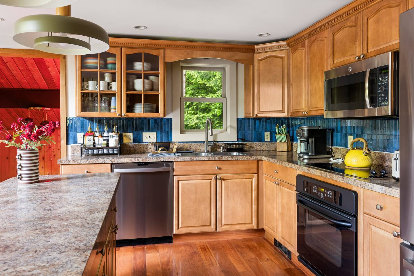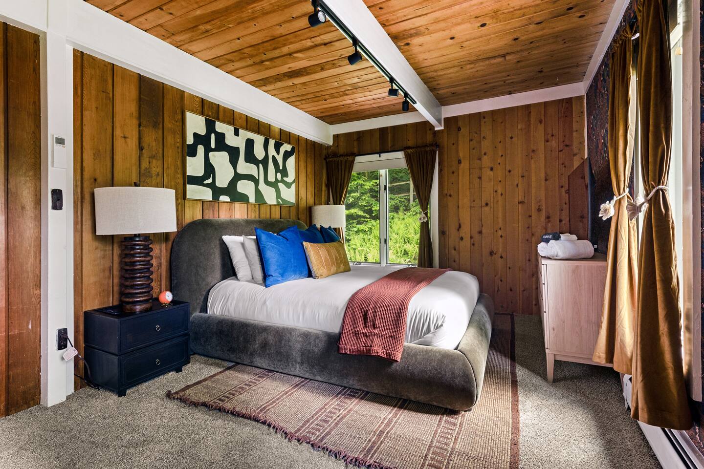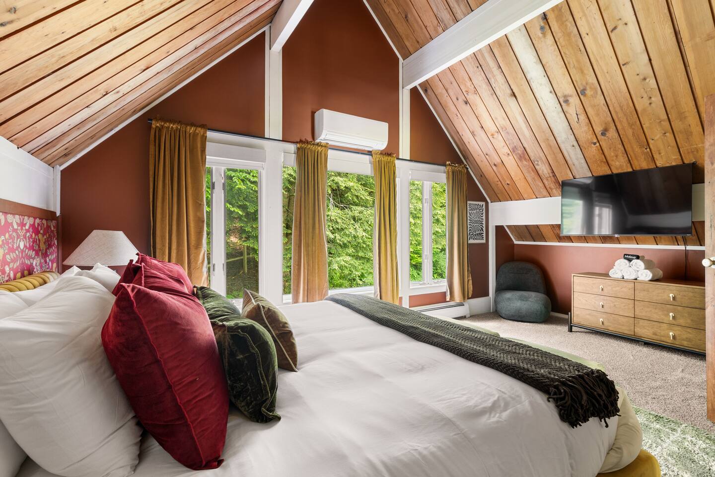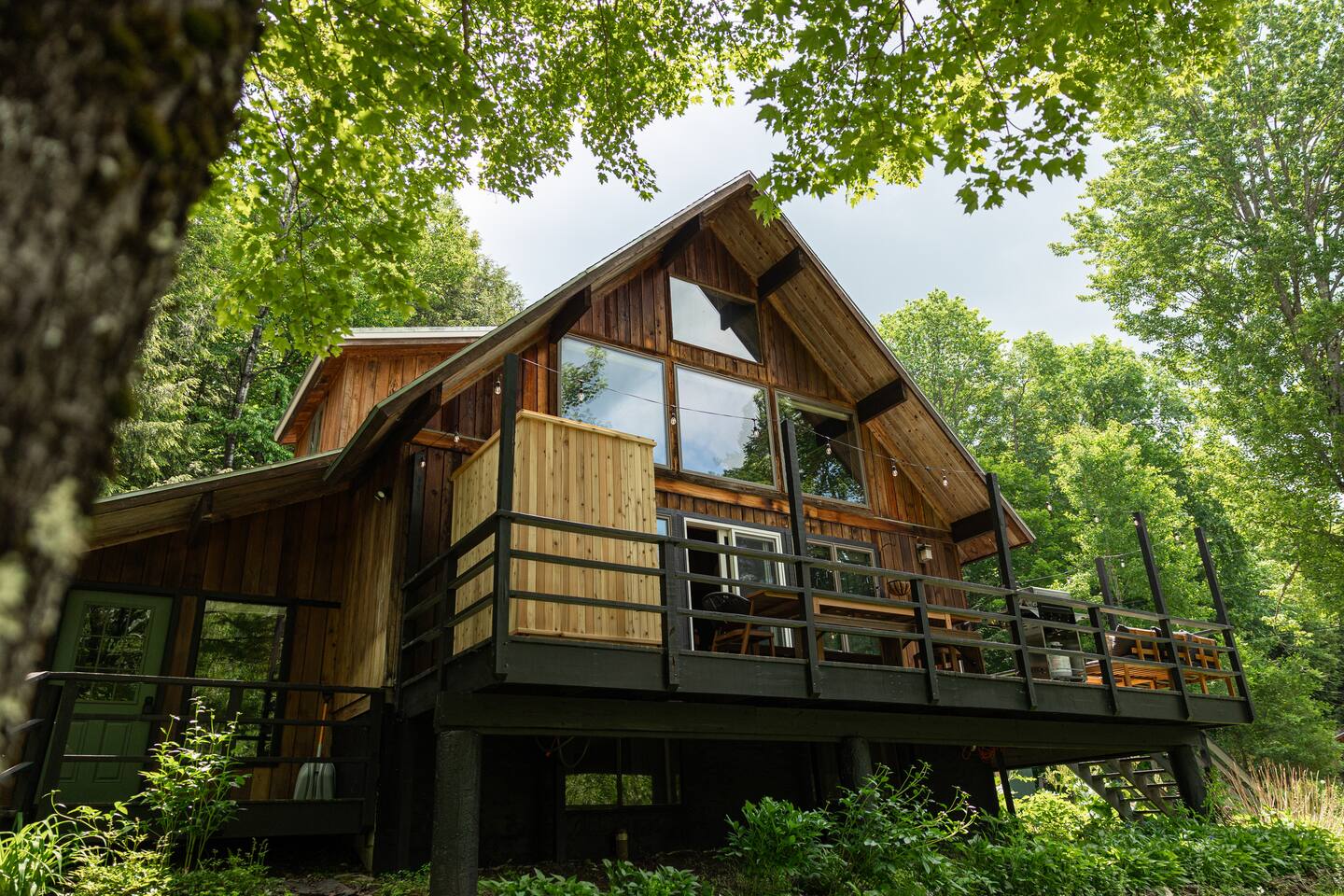 3 Levels 4 Bedroom 9 Beds 2Bath 2,200 sq. ft. The Location: - 2 Miles to Waterbury Reservoir - 7 Miles Gold Brook Covered Bridge - 8 Miles to Downtown Stowe - 13 Miles to Stowe Mountain Resort - 14 Miles to Bolton Valley Resort - 16 Miles Smugglers Notch/MT. Mansfield - 22 Miles to Sugar Bush - 26 Miles (30 Min.) to Burlington, VT Airport The Layout: Top Level- King Bed Master Suite: (Located Up Three Sets of Stairs- 1 set into the cabin, another small set up into the kitchen/main living area, and a final large set up into the master suite) - Private Ensuite Bathroom (Bathroom #1) -Double Vanity - Tub/Shower Combo with Toiletries & Blow Dryer - Spacious Walk-in Closet - Smart TV - Window Wall - Mini-Split for On-Demand Head & AC Main Level- (Located up 12 stairs into the cabin and an additional 5 stairs into the main level from the entry/mud room) - 2 Queen Bedrooms - Bathroom #2 Full bathroom but smaller in size compared to bathroom 1 in the master suite - Fully Stocked Kitchen with Modern Appliances - Coffee Bar with Keurig - Dining Table with Seating for 10 - Kitchen Island with Seating for 2 - Living Room with Comfy Seating & Smart TV - Mini-Split for On Demand Heat & AC - Entryway with Ski & Gear Drop Zone - Neon Sign Welcome Wall (because vibes matter) - Access to Deck with Hot Tub, & Firepit, Grill and Outdoor Seating Queen Bedroom 1: - Plush Queen Bed - Smart TV - Closet Storage - Shared Bathroom Access - Mini-Split for On Demand Heat & AC Queen Bedroom 2: - Plush Queen Bed - Smart TV - Closet Storage - Shared Bathroom Access - Mini-Split for On Demand Heat & AC Lower Level- Game Room: (Located Downstairs) - Pool Table - Classic Pac-Man Arcade Machine - Shuffleboard - 3-in-1 Ping Pong / Foosball / Air Hockey - Board Games for All Ages - Cozy Lounge Area - Large Smart TV for Movie Nights - Fun Retro Décor Throughout - Washer & Dryer - Life Size Games Bunk Room: - 6 Beds (Three Twin/Twin Bunks) - LED Lighting - Smart TV - Cozy Pillows + Optional Floor Seating - Great for Kids, Teens, or the Kid-at-Heart Outdoor Space- - Hot Tub - 2 Person Cedar Sauna (currently unavailable) - Large Firepit with Adirondack Seating for 10 - Outdoor Dining Table Seats 12 - Lounge Area with Cushioned Seating - Grill Station (Propane Provided) - Bistro String Lighting for the Perfect Glow Fully Fenced Yard Around the Entire Chalet - Surrounded by Peaceful Woods for Ultimate Privacy Location: - 2 Miles to Waterbury Reservoir - 7 Miles Gold Brook Covered Bridge - 8 Miles to Downtown Stowe - 13 Miles to Stowe Mountain Resort - 14 Miles to Bolton Valley Resort - 16 Miles Smugglers Notch/MT. Mansfield - 22 Miles to Sugar Bush - 26 Miles (30 Min.) to Burlington, VT Airport Local Attractions Within Minutes: - World-Class Skiing & Snowboarding - Mountain Biking & Scenic Hiking Trails - Fishing, Swimming & Kayaking - Local Shops, Coffee Houses & Bakeries - World Class Eateries - Ben & Jerry’s Factory - Golfing - Breweries, Wineries & Cideries - Art Galleries & Antique Stores - Spas & Wellness Centers - Live Music & Community Events Whether you’re chasing fresh powder, sipping cider downtown, exploring northern Vermonts amazing fall foliage or soaking in the hot tub under the stars — The 1976 offers the perfect blend of laid-back luxury and retro charm. Every inch was designed to be both eye-catching and cozy, giving you that IG-worthy escape with all the comforts of home. Ideal for families, multiple families traveling together, or adult friend groups, the layout gives everyone space to spread out. With bedrooms on every level, a game room that keeps all ages entertained, and outdoor areas made for making memories, your Vermont getaway starts here. No pets allowed due to a sever pet allergy. *Pellet stove in the living room has been kept in the room for aesthetics but is no longer functional. It was a main heat source for the home for many years but we have installed AC/Heat mini splits in the living room as well as the bedrooms to keep heating and cooling the cabin more customizable and stress free.