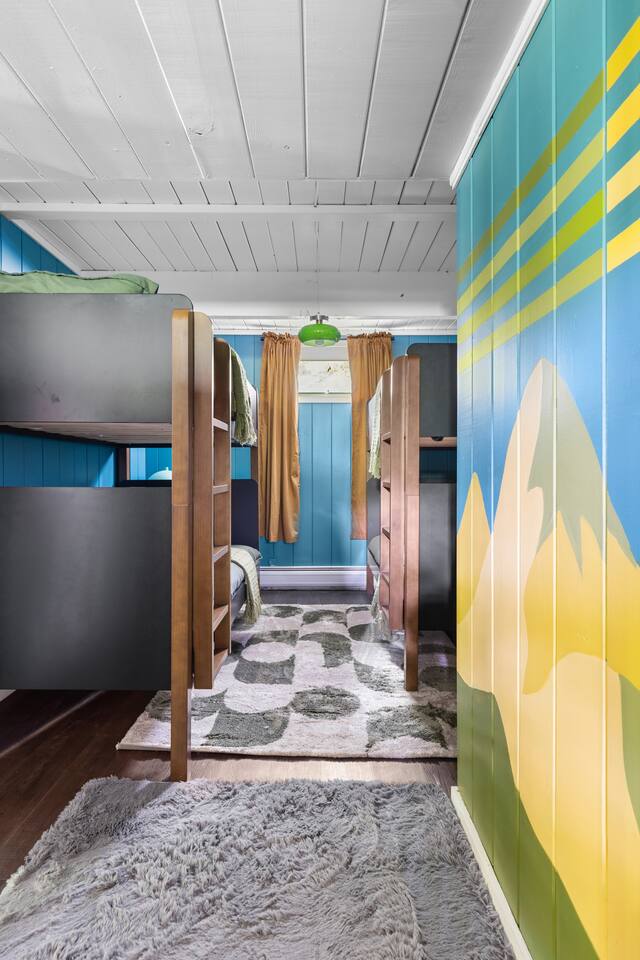 Welcome to The 1976!!! Just 8 miles from downtown Stowe, our 4 bedroom, 2 bath 70’s inspired chalet is equipped for year round fun! With a king master bedroom upstairs, two queen bedrooms on the main floor, and a 6 bed bunk room (w/retro game room!!) downstairs, it’s made for families or group getaways! Unwind in the hot tub, around the fire pit, or at the outdoor table for 10. All bookings include a digital guest book full of our local favorites. No pets allowed. Sleeps 11!